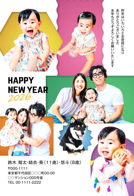 写真を独自の<エフェクト+自動合成>技術によりデザインの世界に溶け込ませることで、他の年賀状にはないアート表現を実現するデザインです。