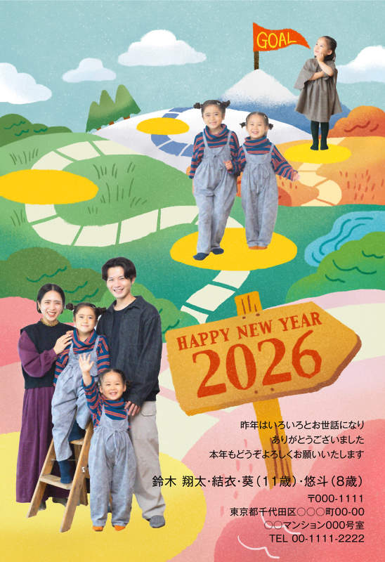 写真を独自の<エフェクト+自動合成>技術によりデザインの世界に溶け込ませることで、他の年賀状にはないアート表現を実現するデザインです。