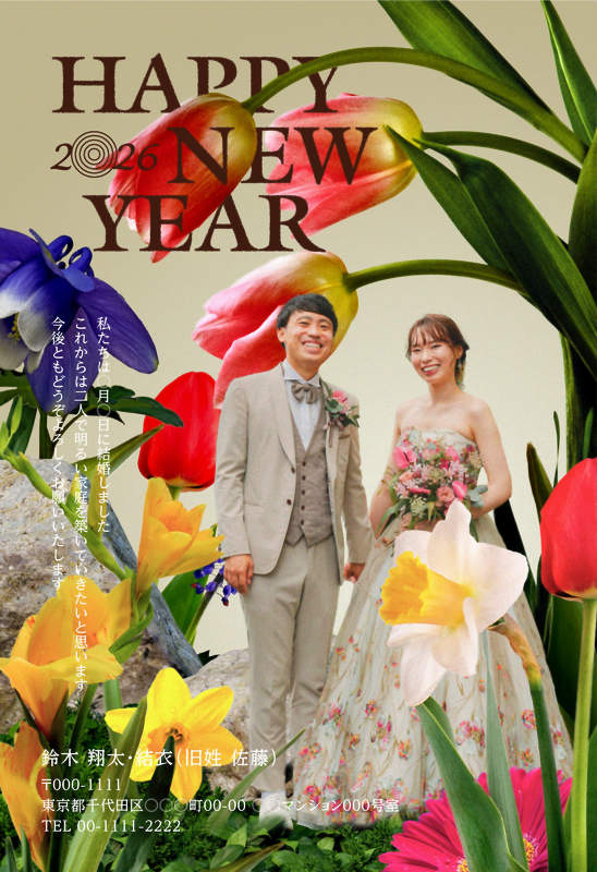 写真を独自の<エフェクト+自動合成>技術によりデザインの世界に溶け込ませることで、他の年賀状にはないアート表現を実現するデザインです。