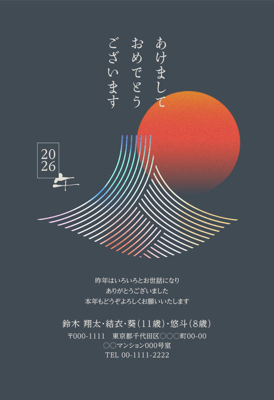 箔押しの定番ともいえる金箔加工は、ハレのご挨拶にぴったり。豪華な輝きと重厚感はそのままに、年賀家族ならではの写真を引き立てるスタイリッシュなデザインをご用意いたしました。