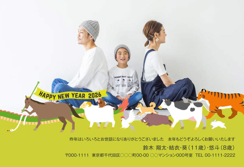 続く行列の中、今年の主役はバッチリポーズ!賑やかな演出で新年を彩りたいあなたへ。ありそうであまりなかったデザインで他と差をつけたい方におすすめです。