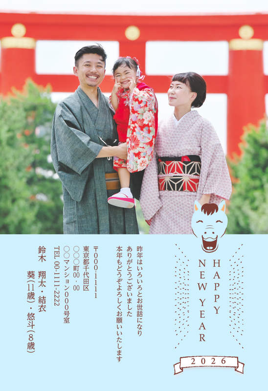 干支がワンポイントのシンプルデザインで、ご友人から目上の方まで幅広いシーンでお使いになれます。お写真も大きく入れて頂けるので、とっておきの一枚で新年のご挨拶に!