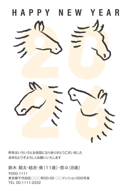 年号の数字をメインビジュアルに据えた、シンプルながらもポイントに遊びを効かせたデザイン。柔らかくポップな色合いで、お子様の写真との相性バッチリです。