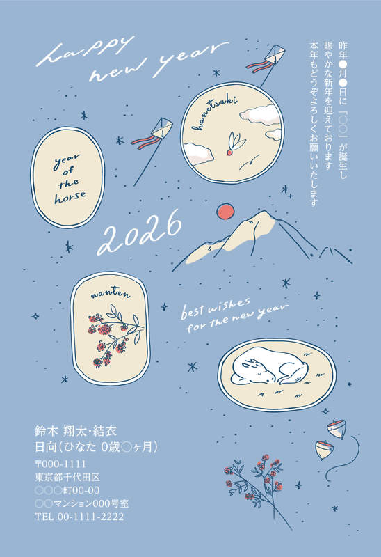 ナチュラルな世界観の中にお正月のモチーフをちりばめました。枠の中に写真が入ることで世界観とマッチした雰囲気を作ることができるデザインです。