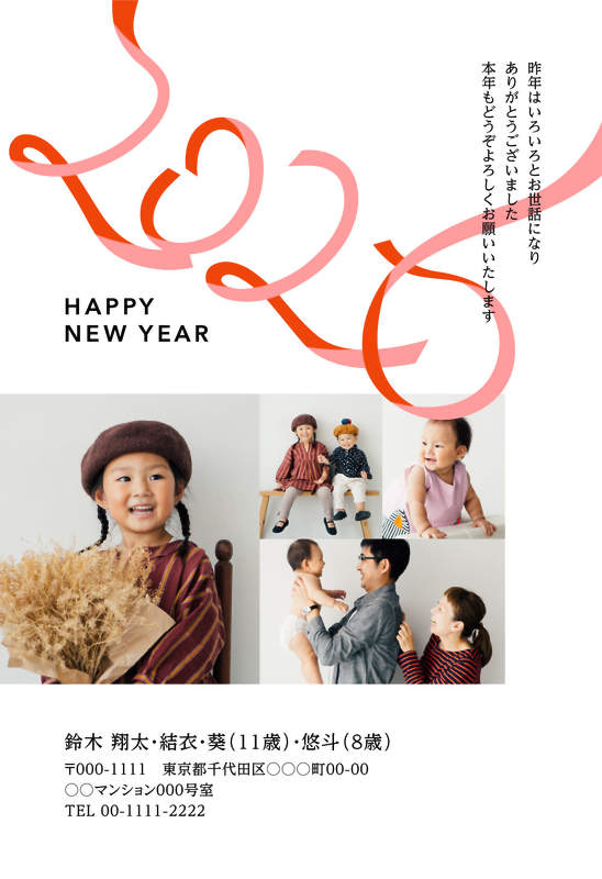 曲線で作られた年号の文字が、大人なシンプルさを引き立てます。各枚数バリエーションは、機能性はそのままに、より写真がおしゃれに見えるレイアウトに設計しました。