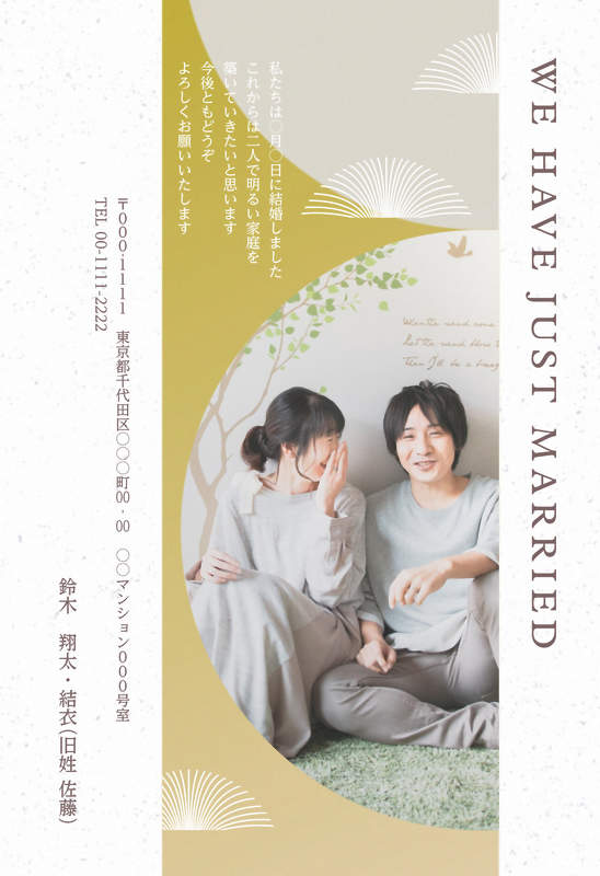 定番な縦型・縦書き仕様のため、畏った挨拶やビジネス用途にもオススメ。繊細なグラデーションとグラフィカルなモチーフにより、上品さとセンスを感じられるデザインです。