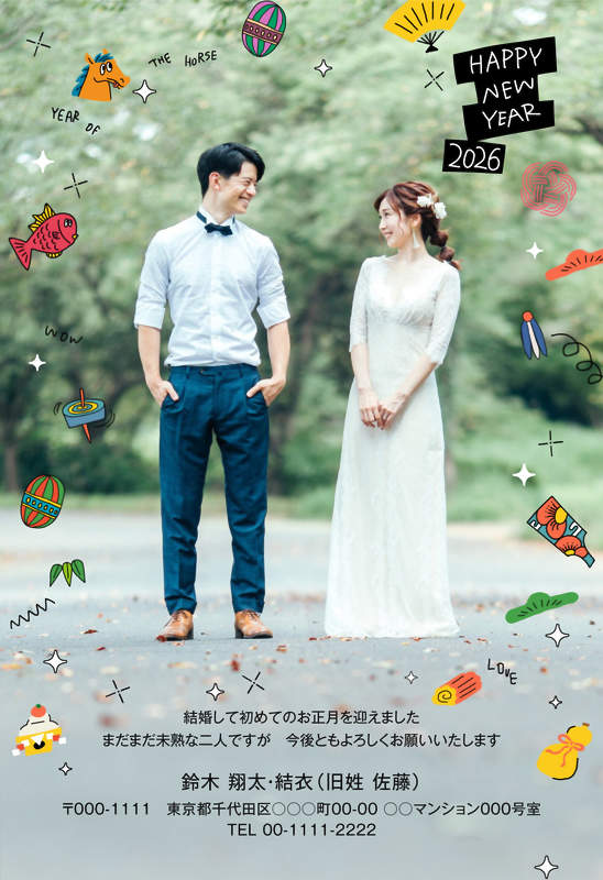 全面に施される写真プリントは新年早々インパクト大!散らばっているイラストたちが可愛らしく、おしゃれさだけでなくユニークさも取り入れたい方へオススメです。