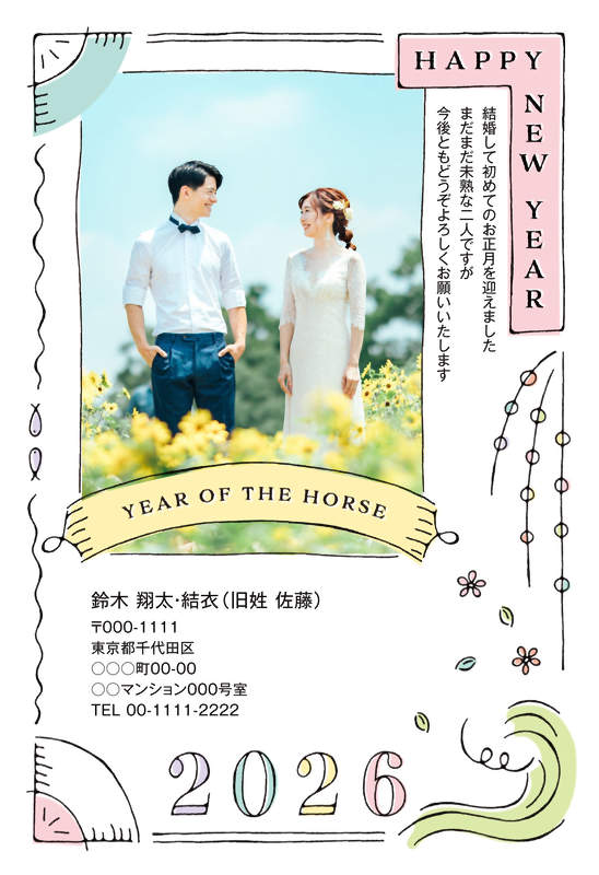 細い線がエレガントで上品な印象のデザインは、和装洋装どちらのお写真とも相性バッチリです。実は新聞がモチーフのこちらのデザイン、ぜひ一面の主役気分で。