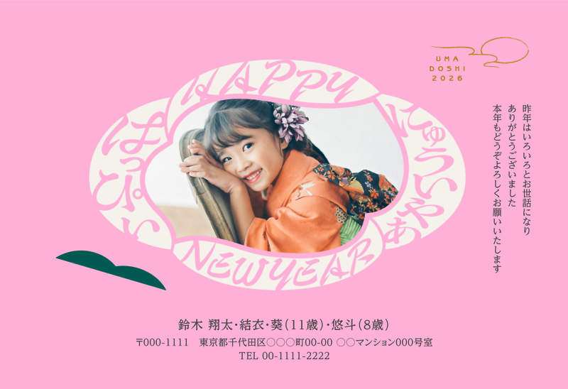 写真を独自の<エフェクト+自動合成>技術によりデザインの世界に溶け込ませることで、他の年賀状にはないアート表現を実現するデザインです。