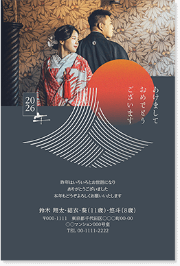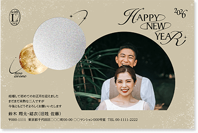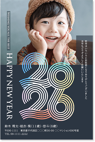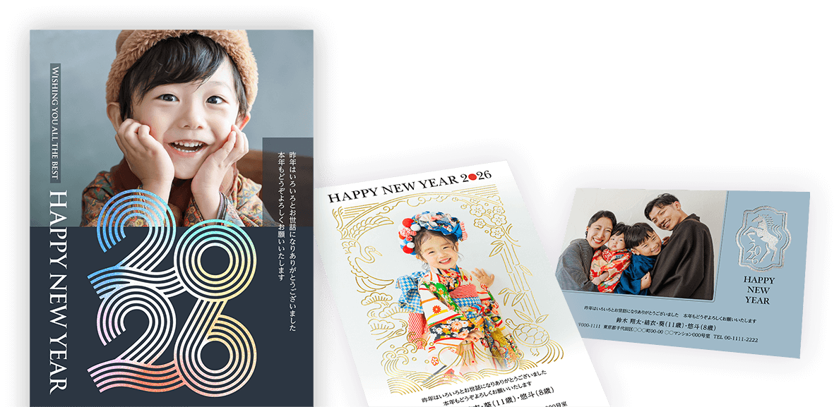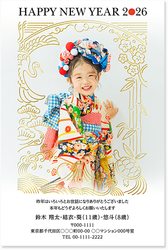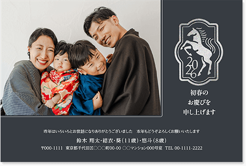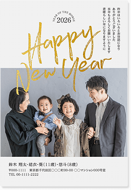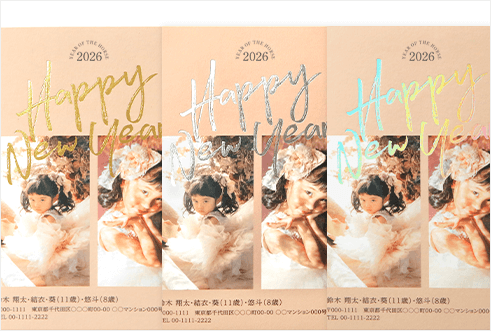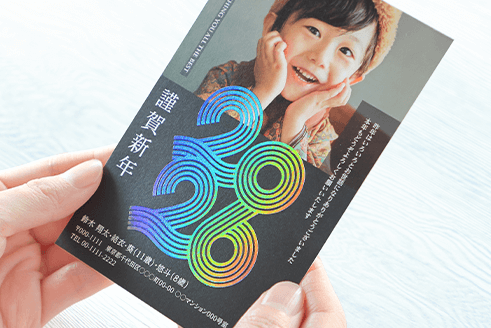 洗練された写真年賀状デザインに、きらりと輝く箔押し加工を加えました。特別な時、大切な方へ、最上級の一枚を送りませんか。