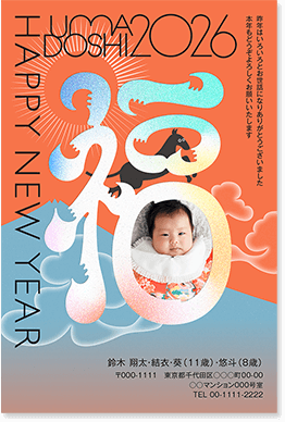 年賀家族の通常ラインナップ商品と同じく一枚からご注文いただけます。(基本料金もまとめて1回分でOK)